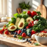 اتبعي نظام غذائي متوازن يحتوي على الفواكه، الخضار، والبروتين.